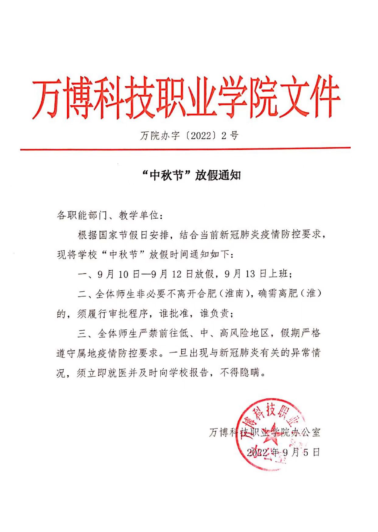 关于2022年中秋节放假的通知