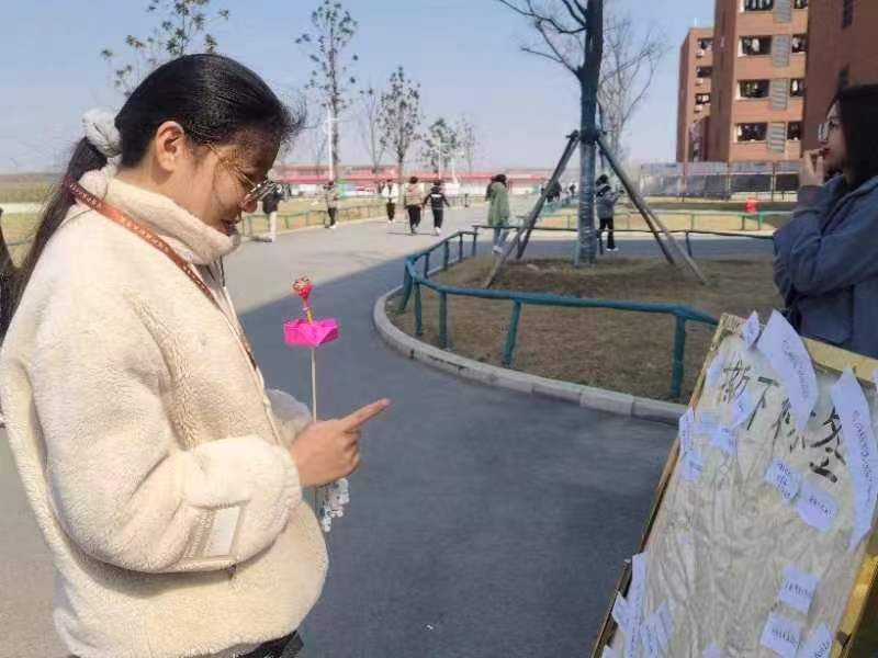 活动中,同学们精心设计了美丽别致的手工艺品。他们用餐巾纸做成的纸巾玫瑰和折纸百合含苞待放,用卡纸制成的精美礼袋,里面装着充满惊喜的“糖果盲盒”。礼物虽轻,胜在心意。办公室、宿管休息室、讲台上……学生们把一枝枝美丽的花朵和一个个充满祝福的礼袋送到女老师们手中,感谢她们为学校的发展贡献了智慧和力量,她们无不惊喜又感动,幸福的暖流弥漫在整个校园。