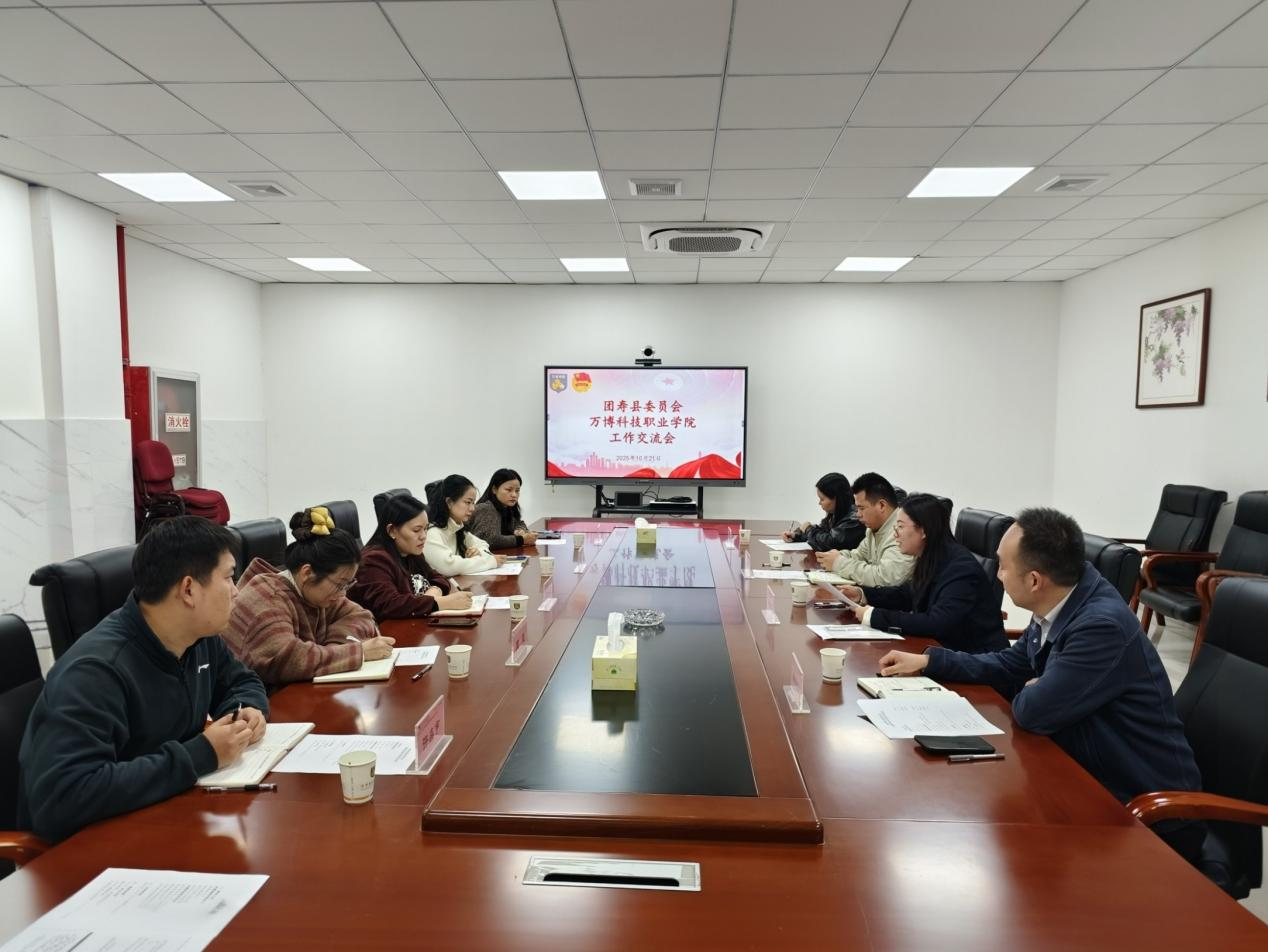 10月21日下午,团县委书记徐梦亚一行莅临我校调研交流。校党委委员、学工部部长、团委书记王媛媛,各二级学院团总支书记陪同参观了校园环境与设施,随后双方举行座谈交流会,就加强校地团组织联动、促进青年成长与发展等议题进行了深入探讨。