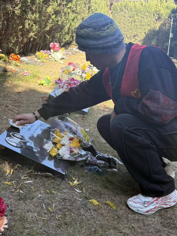 随后,队员们来到烈士墓碑前,俯身轻轻拭去碑上尘埃,并献上素洁的白菊,以朴素庄重的方式表达深切缅怀与崇高敬意。青春的脉搏与英雄的精神同频共振,红色基因在无声处扎根血脉,薪火相传的信念更加坚定。