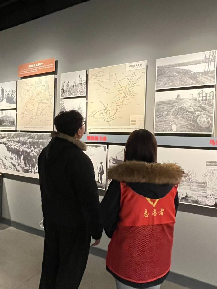 在安徽博物院“华中砥柱 铁军战歌”专题展区,“乡韵韶华”实践队的队员在展板前驻足讲解,从“双堆集战役”的作战地图到“徐南阻击战”的历史照片,他们避免使用艰深的史料语言,转而以“当年青年如何保家卫国”为切入点,将烽火岁月中的战术与抉择,转化为一个个关于奉献、勇气与成长的青春叙事。青年的声音成为连接历史与当下的桥梁,也让红色记忆如种子般,悄然播撒进更多来访者的心中。