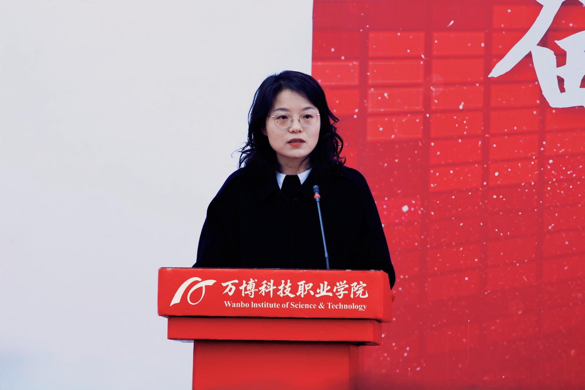 阮姗姗围绕“人人赋能新万博建设,立足岗位争先进位”这一主题进行发言。她指出,“新万博”的建设是一场全方位、系统性的深刻重塑,全体教职工既是“新万博”建设的积极参与者,也是被赋能的对象,更应牢固树立争先进位意识。各岗位需立足本职工作,精准发力,全体教职工协同合作,凝聚起强大的发展合力。同时,她着重强调,全体教职工要进一步细化工作任务,勇于开拓创新、实现突破,严格坚守四条底线,将个人成长与学校发展紧密融合,以真抓实干和责任担当共同推动“新万博”实现高质量建设。